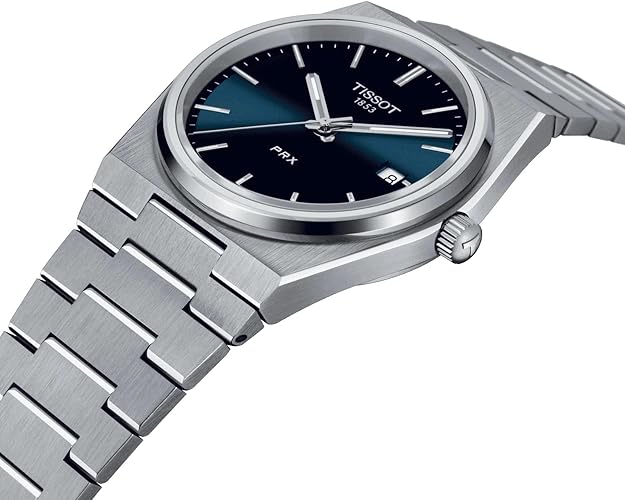 Stainless steel case with a stainless steel bracelet. Fixed stainless steel bezel. Blue dial with luminous silver-tone hands and index hour markers. Minute markers around the outer rim. Dial Type: Analog. Luminescent hands and markers. Date display at the 3 o'clock position. ETA caliber F06.115 movement. Scratch resistant sapphire crystal. Solid case back. Round case shape. Case size: 40 mm. Case thickness: 10.4 mm. Fold over clasp with a safety release. Water resistant at 100 meters / 330 feet. Functions: date, hour, minute, second, battery eol indicator. T-classic Series. Casual watch style. Watch label: Swiss Made.